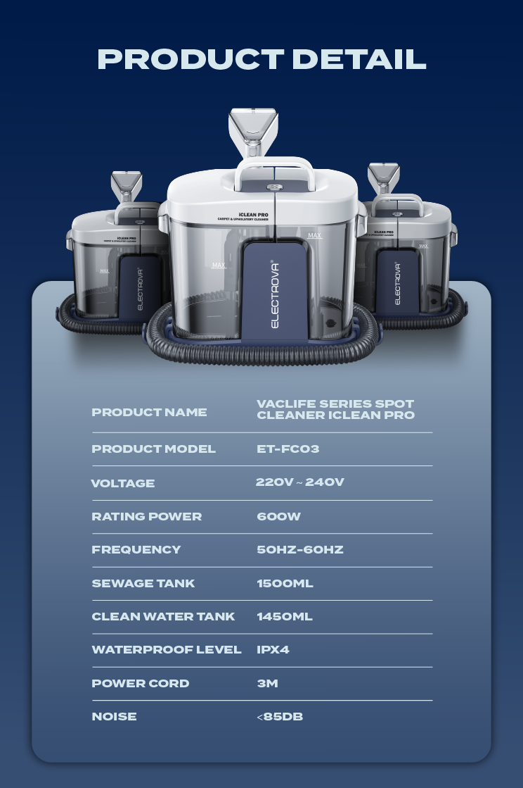 Electrova Fabric & Upholstery Spot Cleaner iClean Pro VacLife Series